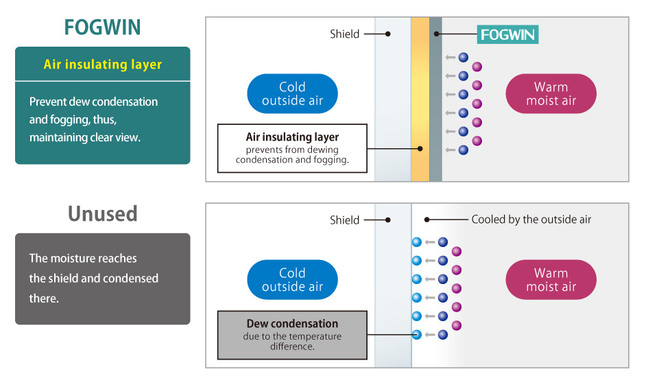 The FOGWIN double super antifog lens creates a sealed layer of insulating air between the cold air outside the helmet and the warm air inside the helmet. This prevents the formation of fog on the visor; thus, maintaining clear view.