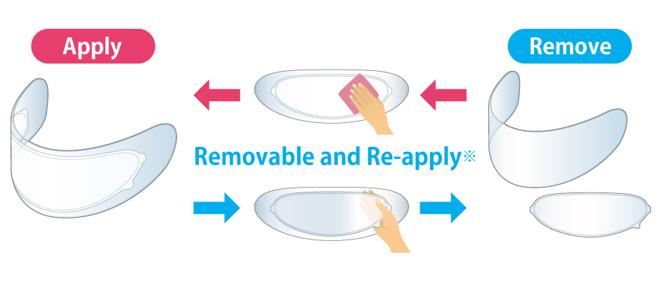 ※If the FOGWIN loses adhesion to the visor, remove it and wash it gently in tepid water with a dissolved synthetic detergent.